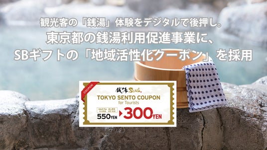SBギフト株式会社(東京オフィス:東京都港区、代表取締役:大和 清隆 )が提供する「地域活性化クーポン」が、東京都および東京都公衆浴場業生活衛生同業組合様が実施する「WELCOME! SENTOキャンペーン」におけるデジタルクーポン基盤として、採用されたことをお知らせします。