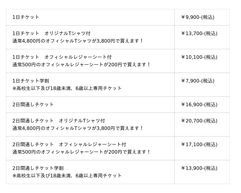 【チケット一般販売期間】9月3日 10:00 ~ フェス開催前日23:59