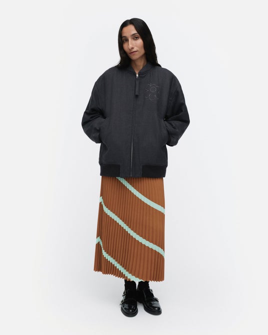 マリメッコは、独創的なプリントや色使いによって世界中に広く知られるフィンランドのデザインハウス。1951年、アルミ・ラティアにより創業。オリジナリティあふれるファッション、バッグ、小物からホームデコレーションまでを展開するライフスタイルブランドの先駆けとなる。マリメッコが創業当初から一貫して掲げてきたミッションは、時代に流されることのない機能的でわかりやすいデザイン。目にするだけで力が湧くような大胆なプリントと色使いで、毎日の暮らしに幸せと喜びをもたらすデザインを発信している。