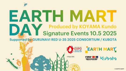 2025年日本国際博覧会(大阪・関西万博)シグネチャーパビリオン「EARTH MART」(テーマ事業プロデューサー:小山薫堂)は、2025年10月5日(日)に大阪・関西万博シグネチャーイベント「EARTH MART DAY supported by ぐるなび RED U-35 2025 コンソーシアム/クボタ(以下「EARTH MART DAY」)」を開催します。