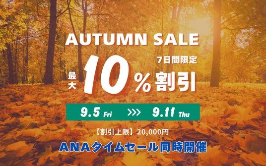 【7日間777枚限定】最大10%割引クーポン配布!ANAタイムセール連動「秋旅セール」開催!