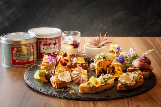 チーズとオータムフルーツに合わせる紅茶は、フランスで150年以上の歴史を誇るパリジャン御用達ブランドの"クスミティー(KUSUMI TEA)"のオーガニックティーをフリーフローにてご提供。優雅なひと時に華を添えます。