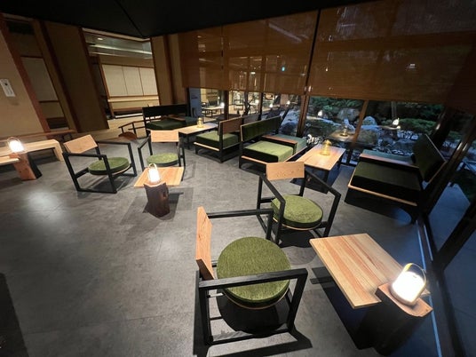 ナイトバーラウンジ(16:30~22:00)2025年7月にリニューアルしました。中庭を眺めながら島根の地酒や珈琲など