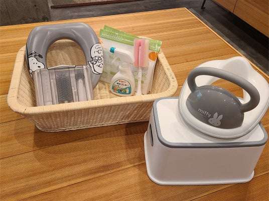 補助便座、おしりふき、お子様食事用エプロン、哺乳瓶洗浄セット、 など