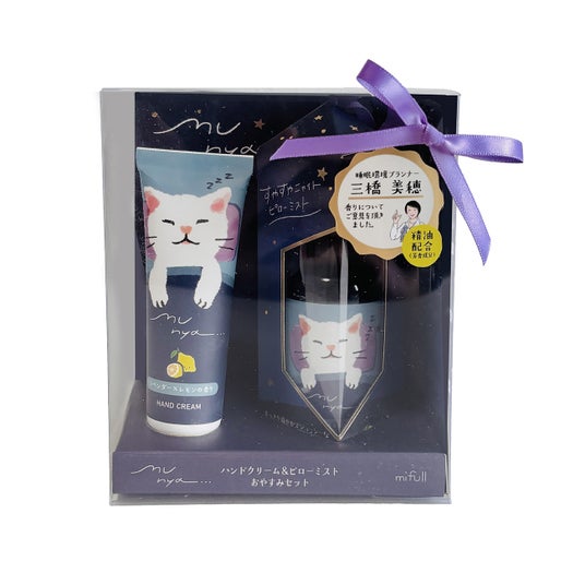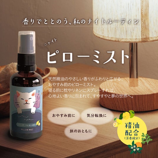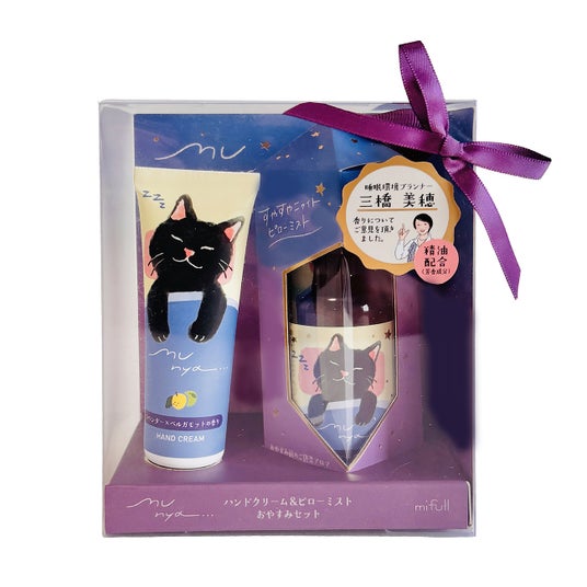 「munya」シリーズは、「おやすみ前の小さなしあわせ」を届けたいという想いから生まれました。忙しい毎日で、ついつい後回しにしがちな睡眠時間。そんな中でも、ほんの少しでも自分をいたわる時間を持てるように、香りや猫のイラストで癒しを提供することにこだわりました 。