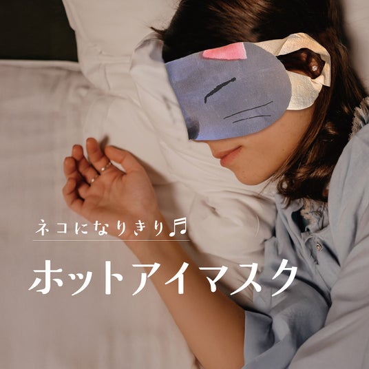 眠る猫のイラストが描かれたパッケージのホットアイマスクは、じんわりと目元を温め、優しい香りでリラックス気分へと誘います 。