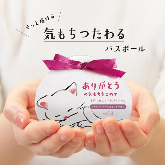 お湯に入れるとふんわりと香りが広がり、気持ちもほぐれるバスボールです 。パッケージには「ありがとう」や「ほんの気持ち」などのメッセージが書かれており、プチギフトにぴったりです 。