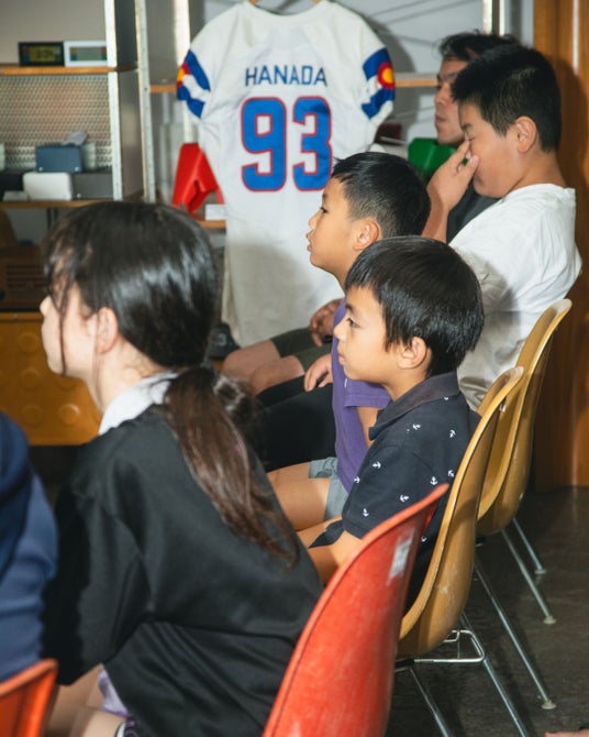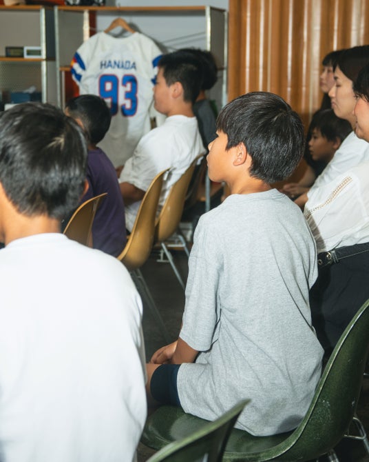 相撲からアメリカンフットボールへ転向しようと思ったきっかけや、アメリカ留学で感じた日本との文化の違い、失敗や孤独を経験しても挑戦を続けたからこそ実感できた成長など、チャレンジを続ける花田選手のお話を参加者たちは真剣に聞いていました。