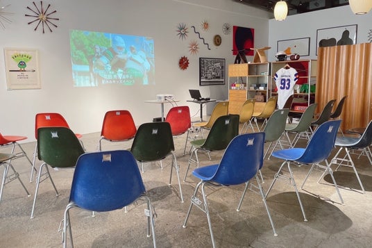 本イベントは、6月に中目黒にオープンした当社が運営するギャラリースペース「calif art gallery(カリフアートギャラリー)」で行われました。また、会場で参加者に座っていただいた椅子は、「calif art gallery」に隣接し、同じく当社が運営するインテリアショップ「Mid-Century MODERN(ミッドセンチュリーモダン)」が取り扱う、モダンデザインを象徴する名作のイームズシェルチェアです。イベント参加者に、空間とインテリアも楽しんでいただきました。