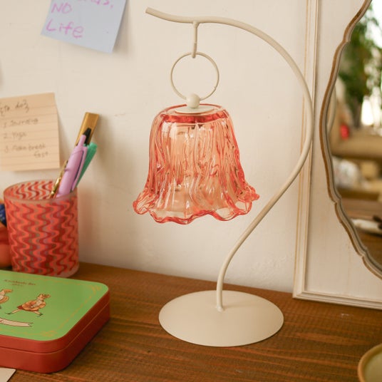 花型のガラスシェードを通った光がとっても綺麗なテーブルライト