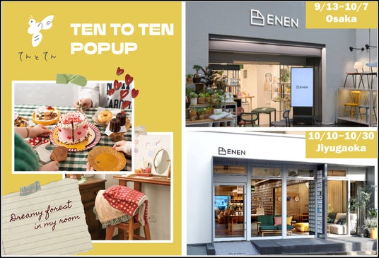 インテリア雑貨・食器・ファッションの通販サイト「てんとてん」を運営するTENTOTEN株式会社(本社:大阪府大阪市中央区、代表取締役:宮野 優樹)と、生活スタイルが変わっても長く使い続けたくなるモジュラー家具(※1)を展開するD2C家具ブランドのENEN株式会社(本社:大阪府大阪市中央区、代表取締役社長:大西 寛)は、ENEN大阪店<2025/9/13(土)~10/7(火)>およびENEN自由が丘店<2025/10/10(金)~10/30(木)>にて、「DREAMY FOREST」をテーマに、EC雑貨店「てんとてん」の初めてのポップアップを共同開催します。なお、各店舗での開催期間中、雑貨商品5%オフキャンペーンを実施します(一部対象外あり)。