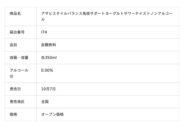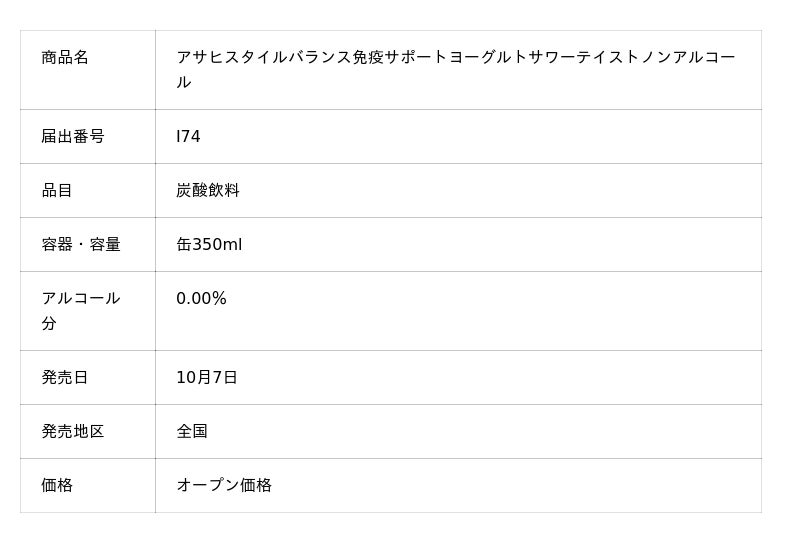 アサヒビール株式会社(本社 東京、社長 松山一雄)は、ノンアルコールカクテルテイスト飲料※1『アサヒスタイルバランス免疫サポートヨーグルトサワーテイストノンアルコール』を10月7日から発売します。