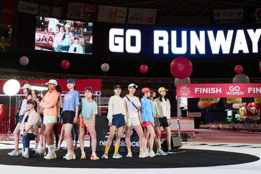魅力あふれるマラソンEXPO メイン会場のバンテリンドーム ナゴヤでは、レース2日前から「マラソンEXPO」を開催。大会スポンサー各社のブースが並ぶほか、オリジナルグッズの販売や豪華なゲストが出演するステージイベントなどの企画が盛りだくさん。3日間で約10万人が訪れる人気の催しです。マラソンのフィニッシュレーンをランウェイに見立てたファッションショー「GO RUNWAY」で会場を盛り上げるなど、レース以外でも「女性が輝けるシーン」を創出しています。