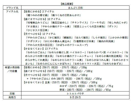 介護食の新ブランド「まんぷく日和」9月29日発売