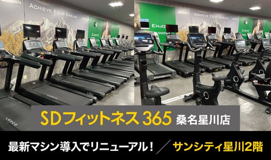 創業107年のココロとカラダの健康を支えるウェルネス企業、SDエンターテイメント株式会社(本社:北海道札幌市、代表取締役社長:高橋 誠 東証スタンダード4650)が運営するスポーツジム、「SDフィットネス365桑名星川店」(三重県桑名市星川785 サンシティ星川2階)は、2025年9月、最新型トレーニングマシンの導入を行い、リニューアルいたしました。