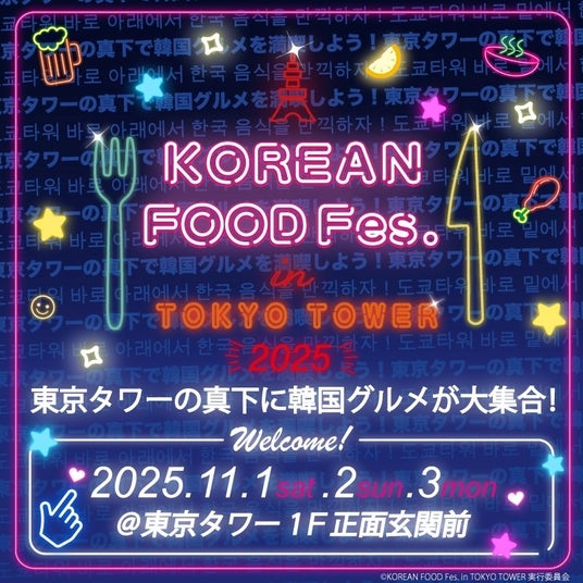 昨年に続き11月1日(土)~3日(月・祝)の3日間、東京タワーの真下で『KOREAN FOOD Fes. in TOKYO TOWER 2025』を開催いたします。