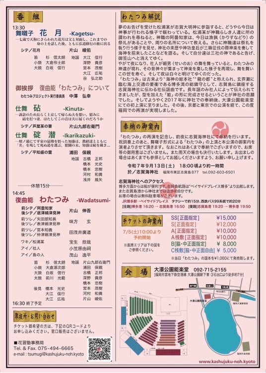 復曲能「わたつみ」福岡公演 ー 日本文化継承と地域活性化を想いに協賛決定