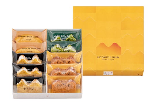 上質な味わいはそのままに、食べやすく上品なひとくちサイズのバームクーヘンです。2つの代表作『マウントバーム しっかり芽』『ストレートバーム やわらか芽』、最新作『マウントバーム 蜜芋バター』、芳醇宇治抹茶香る『マウントバーム お抹茶』、4種の美味しさが勢ぞろい。