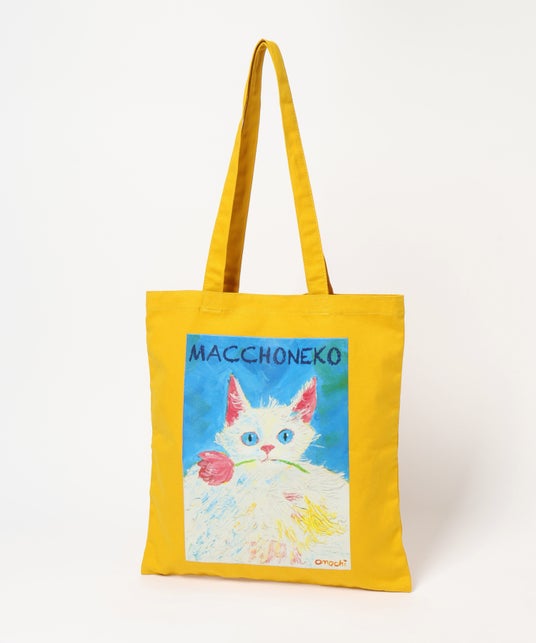 ひなたさんが色とサイズを厳選し、機能性とデザイン性を両立させたタテ型トート。ノートパソコンがすっぽり入る収納力と、持ち運びやすい軽さを兼ね備えています。デザインは、ひなたさんが描き下ろした愛猫"おもち"のイラスト。ファンにはたまらない、唯一無二のアートトートです。日常使いからお出かけまで幅広く活躍する、こだわりのイエローとブルーの2色を展開します。