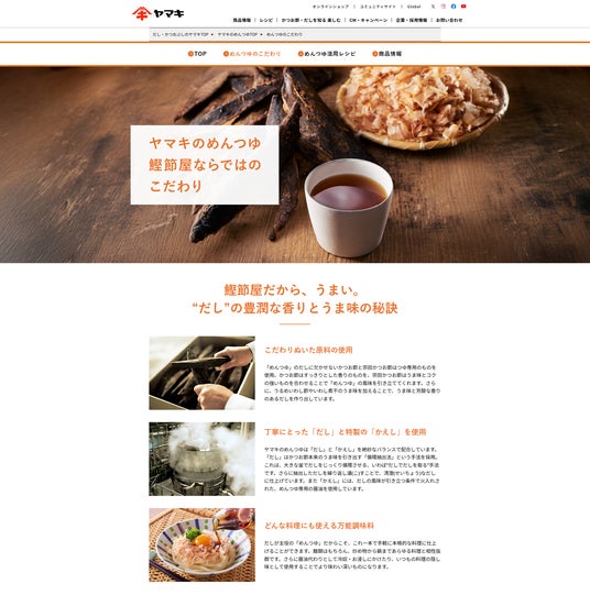 「ヤマキ めんつゆ」のブランドサイトをリニューアル