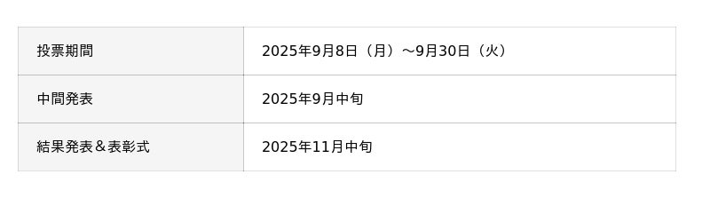 2025年9月8日(月)~9日30日(火)の期間で、「トクバイ」ユーザーをはじめとする生活者の方々からの投票を実施します。味・見た目・コストパフォーマンスなどさまざまな理由をもとに投票できるため、店舗の規模や知名度、商圏に関係なく、「食べたことがあり、ぜひおすすめしたい!」という商品はもちろんのこと「これは食べてみたい!」と思う商品なども選ばれます。