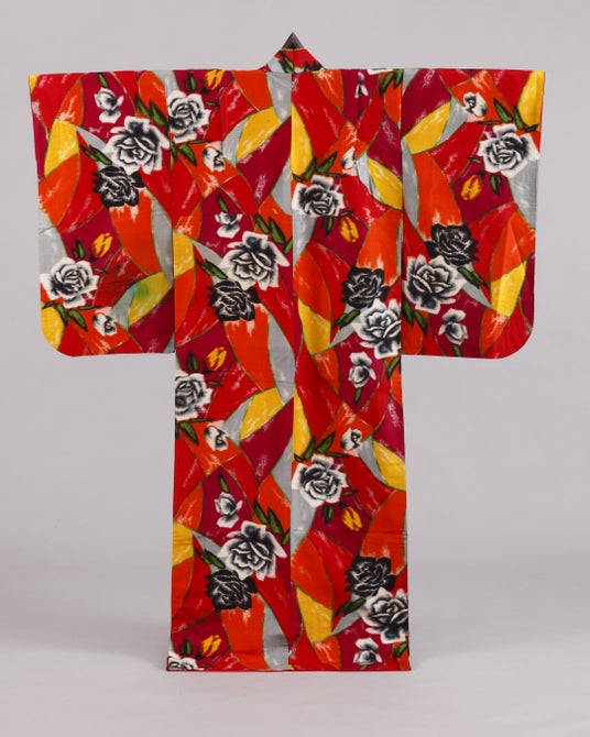 出品作品3.「染分地薔薇模様銘仙着物 昭和時代・20世紀」