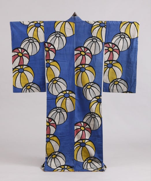 出品作品2.「縹地紙風船模様銘仙着物 昭和時代・20世紀」