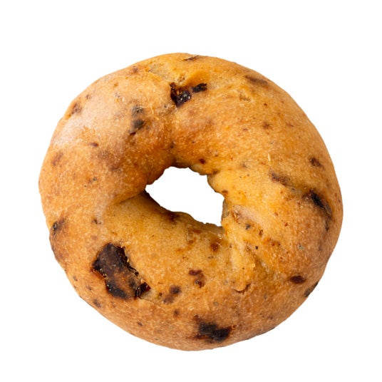 Comeat(R)(コミート)の旨みと香ばしさが、ガーリック、オリーブ、ドライトマトと絶妙に調和したベーグルタイプ。食事パンとしても軽食としても楽しめます。