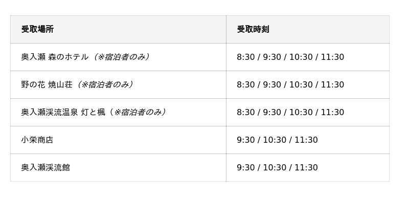 下記よりお受け取りの場所および時刻をお選びいただけます。