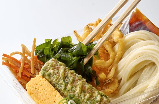 毎日麺職人※2が国産小麦、塩、水のみからつくるうどんに、色とりどりのおかずを丁寧に詰めて提供する「丸亀うどん弁当」。ご注文をいただいてから、打ち立て・茹でたてのうどんを詰めるため、お弁当でもお店と変わらない、のど越しの良さをお楽しみいただけます。