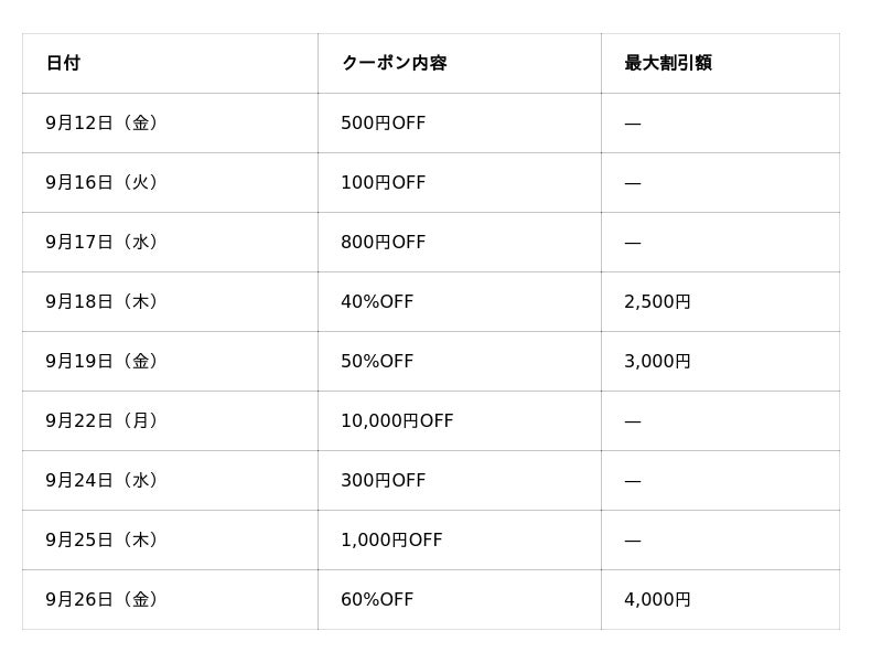 クーポン配布スケジュール