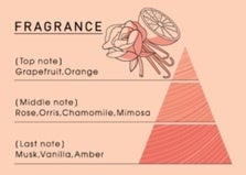 華やかでリッチなフローラルブーケをメインに、フルーティやシトラスの明るいアクセントを添えて輝きを感じさせる特別感のある印象を持たせた香りです。