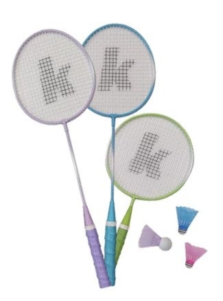 ラケット3本とシャトル3個がセットになった親子でバドミントンが楽しめるセットです。