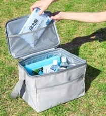 アウトドアや毎日のお買い物にも使えます。フタの内側に保冷剤(別売り)が入れられます。使わない時はコンパクトに折りたためます。