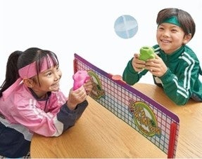 昭和~平成にかけて人気を博したバドミントン型対戦スポーツゲーム「ブタミントン」の復活版です。「ブタミントン」はブタさんを押して鼻から空気を出して、羽根を飛ばし合い、相手側のコートに羽根を落とすゲームです。思わず熱中すること間違いなしのゲームで、家族が集まるシーンにおすすめです。