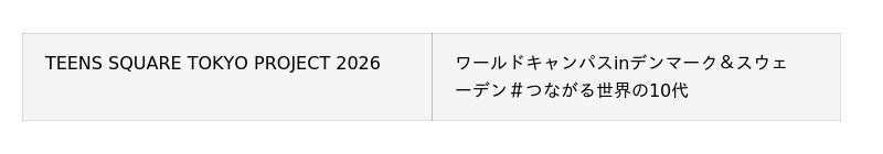 TEENS SQUARE TOKYO PROJECT 2026及びワールドキャンパスinデンマーク&スウェーデン#つながる世界の10代 応募開始:9月9日(火)