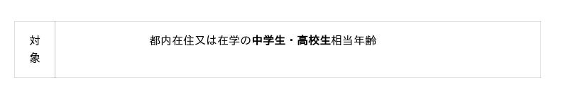 ア 令和7年4月時点で、都内在住又は在学の1.中学生、2.高校生又は1.・2.に相当する年齢で