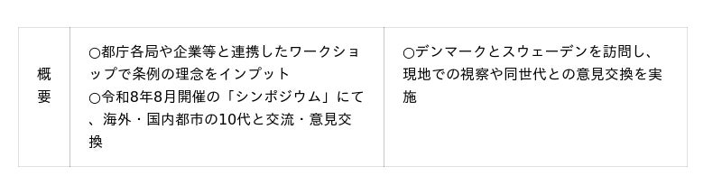 交流プログラムに先立ち、都庁各局や企業等と連携し、こどもの権利や条例理念の理解、シンポジ