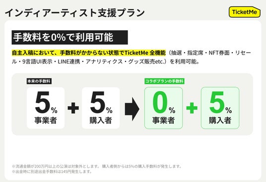※流通金額が200万円以上の公演は対象外となり、主催者様に5%の手数料がかかります。