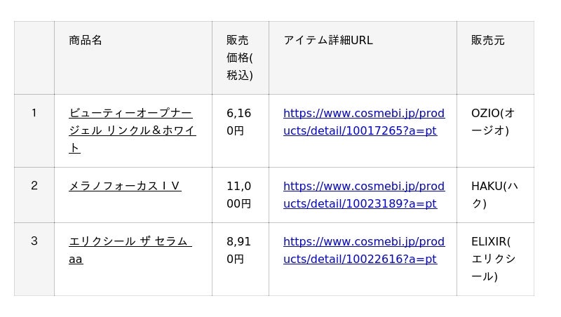 ・公式サイト :https://www.cosmebi.jp/?a=pt