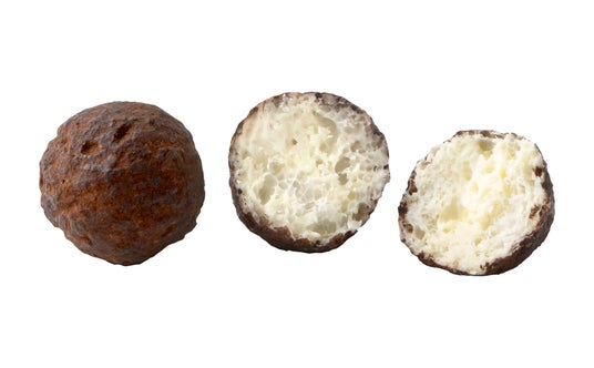 「comemari」で初めてのホワイトチョコレート仕立ての特別仕様。北海道産マスカルポーネパウダーを加えたホワイトチョコレートをひと粒ひと粒に贅沢にしみ込ませ、コーヒーパウダーとココアパウダーをふんわりとまとわせました。ひとくちサクッと噛みしめた後、じんわりとコク深い甘さが広がる、ご褒美にぴったりの味わいです。