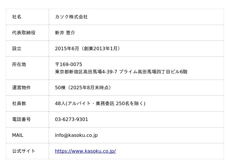 「この歴史ある八重洲の地に「RHUMB LINE TOKYO」を開業できることを大変嬉しく思います。当ホテルは、単なる宿泊施設ではなく、訪れる方々の新たな発見や旅の起点となる『東京滞在の拠点』となることを目指しております。海外と東京の文化が交差し、洗練されたデザインと心温まるおもてなしを通じて、皆様に感じていただけるよう努めてまいります。八重洲の新たなランドマークとして、地域の皆様と共に発展していくことを楽しみにしております。」カソク株式会社について