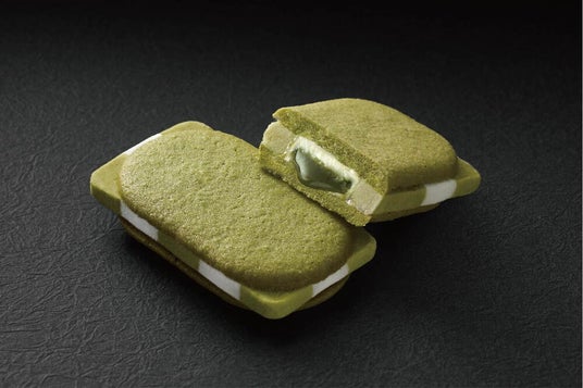 市松模様のショコラクッキーのセンターに、煎茶の特製ソースを仕込みました。その上から釉のかかりを想わせる煎茶のラング・ド・シャをあしらいました。緑のラング・ド・シャとショコラ、ソースのハーモニーが織部の風雅で奥行きのある世界に誘います。
