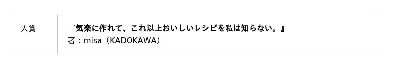 「今年は、とても面白いタイトルのレシピ本が多く、中身のレシピがどのようなものなのだろう?と想像してしまいました。」とコメントされました。