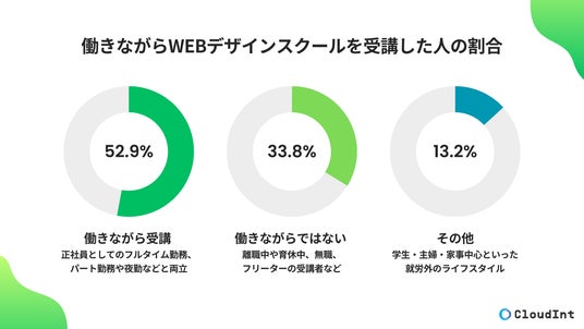 Webデザインスクール情報メディア「CloudInt」は、全国のWebデザインスクール受講者を対象に、「受講期間中に働きながら学習していたかどうか」に関する調査を実施しました。