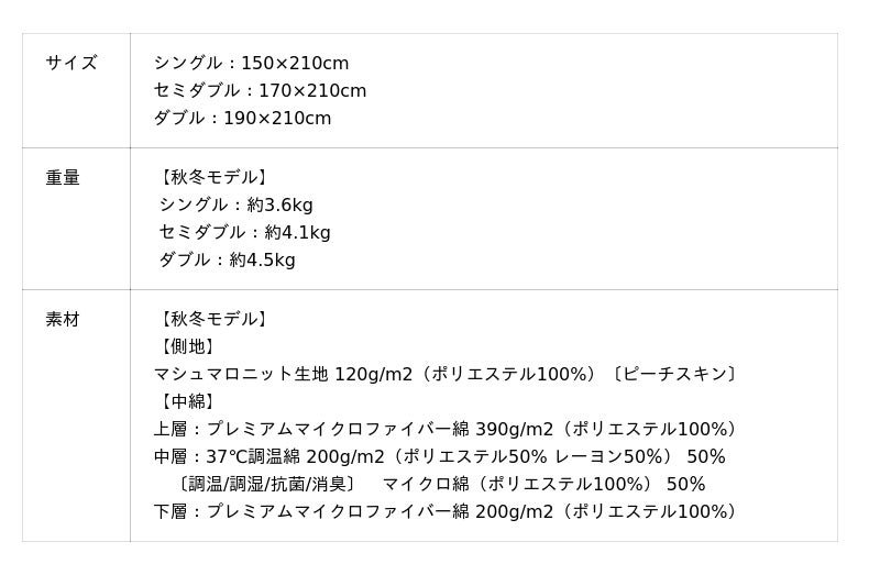 今回、「秋から冬の季節にも使いたい」というお客様のお声を受け、中綿の充填量を増やした"秋冬モデル"が新たに登場しました。増量した中綿が空気をたっぷりと含み、ふっくらとした仕上がりで秋冬シーズンにぴったりです。