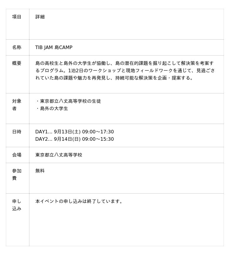 2日間のアントレプレナーシップ教育キャンプ「TIB JAM 島CAMP」