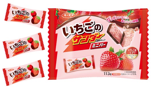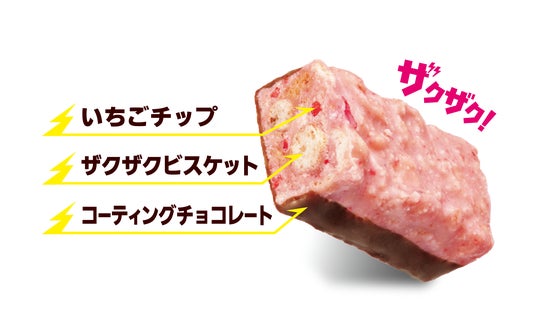 パワーアップしたいちご感をブラックサンダーシリーズらしいザクザク食感でお楽しみください。