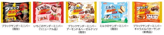 人気シリーズ!ブラックサンダーファミリーパックに新フレーバーが仲間入り『ブラックサンダーミニバー キャラメルバターサンド』『いちごのサンダーミニバー』が登場!