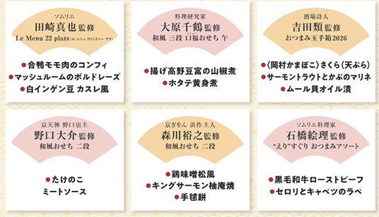 売上No.1の料理研究家 大原千鶴さん監修おせちをはじめ、人気料理研究家や有名店の料理人による監修おせちを合わせて、6種類の2026年新作おせちの一部献立をひと足お先にお試しいただけます。名だたる監修者が手掛けた珠玉の品々が一度に楽しめる、まさに贅沢な商品です。